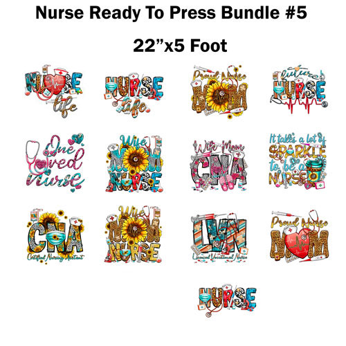 Nurse ready to press transfer Bundle #5 Sublimation or DTF 22×5 foot roll