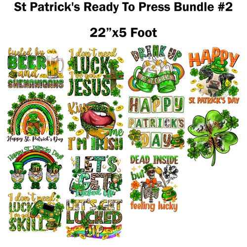 St Patricks Day Ready to press transfer Bundle #2 Sublimation or DTF 22×5 foot roll