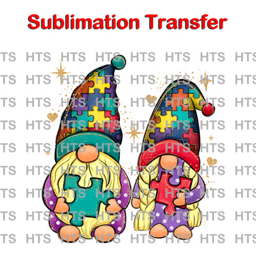 autism couple gnomes ready to press sublimation heat transfer